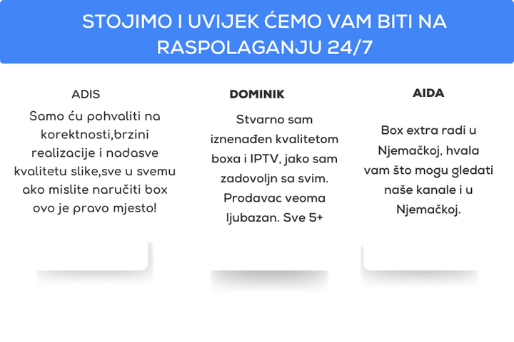 Sve što vam treba je internet veza od 15-20 Mb/s, a mi ćemo vam osigurati nevjerojatno iskustvo gledanja televizije u vašem domu.