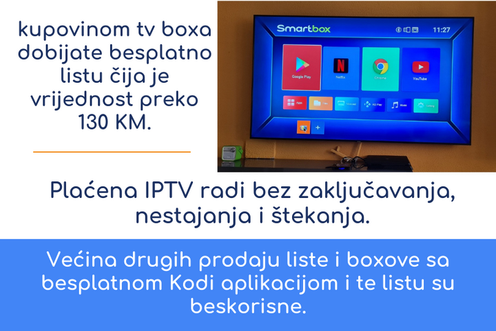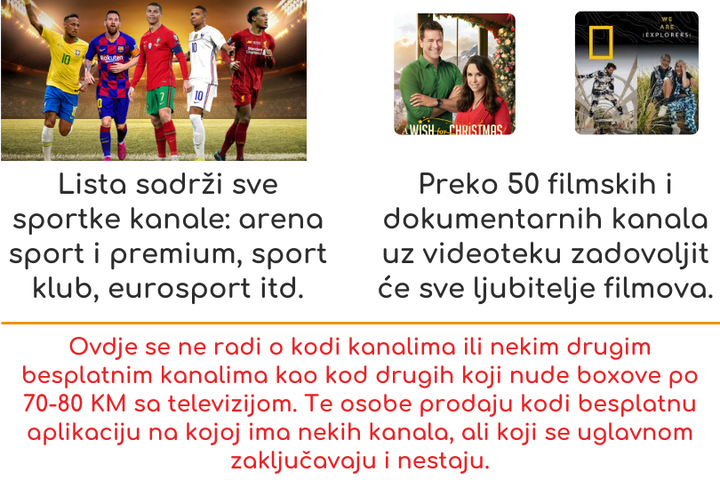 Ovdje se ne radi o kodi kanalima ili drugim besplatnim kanalima koje nude neki drugi za boxeve po 70-80 KM. Te osobe prodaju Kodi besplatnu aplikaciju s nekim kanalima, ali ti kanali se uglavnom zaključavaju i nestaju.