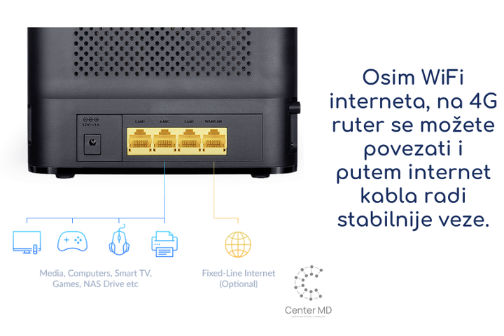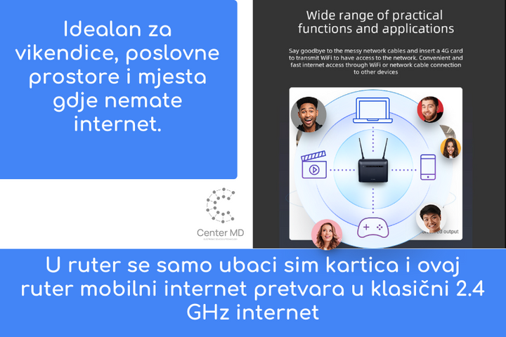 🌍 Putovanja: Uživajte u pouzdanoj internet konekciji gdje god da se nalazite. Naš 4G ruter je prenosiv i idealan za putovanja.