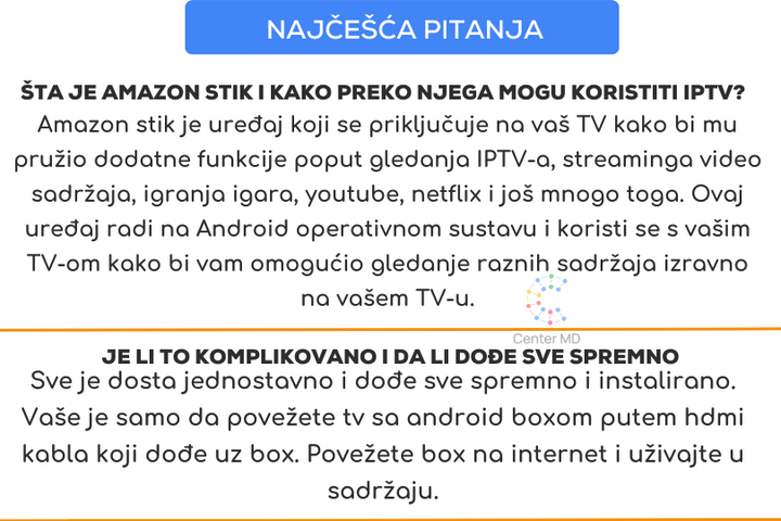 Transformirajte svoj stari TV u pametan uređaj i uživajte u neograničenim mogućnostima zabave. Naručite svoj Amazon Fire TV Stick i IPTV pretplatu danas i otkrijte potpuno novi svijet multimedijalnog sadržaja!