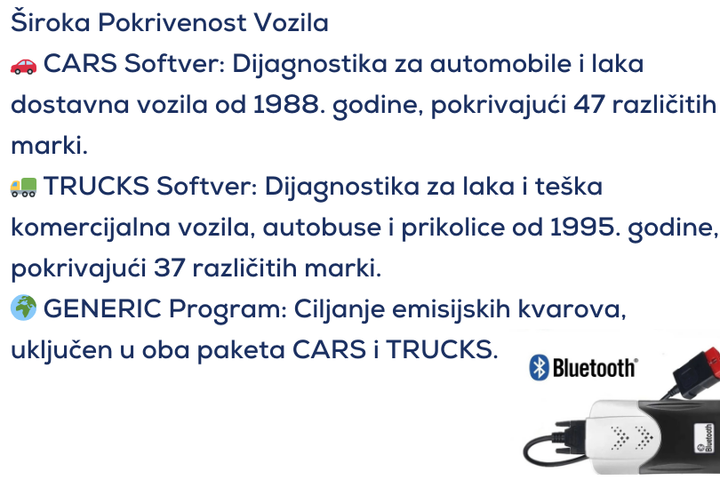 BLUETOOTH DIJAGNOSTIKA 2024 TCS CDP ZA AUTA I KAMIONE + KABLOVI