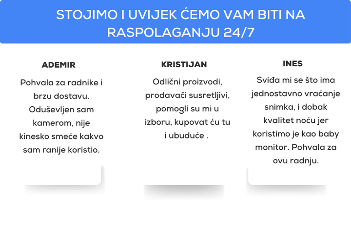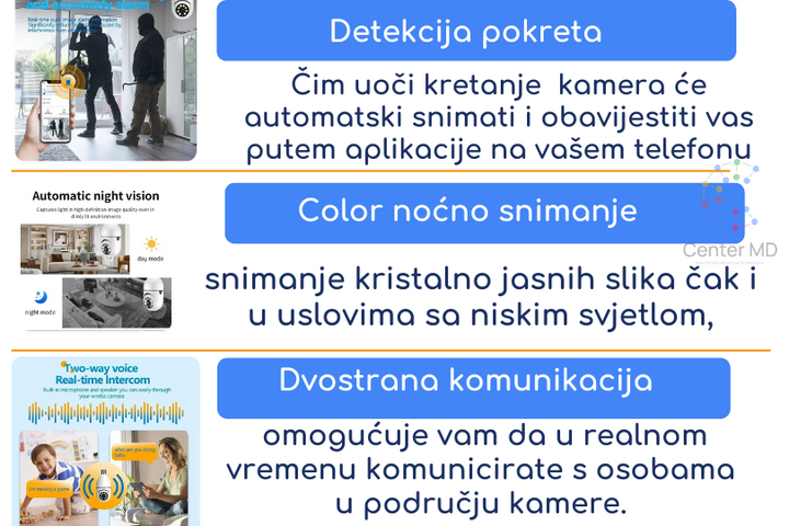 🌙 Noćno snimanje – Kamera snima u savršenoj kvaliteti čak i u mraku, omogućujući vam 24/7 nadzor.