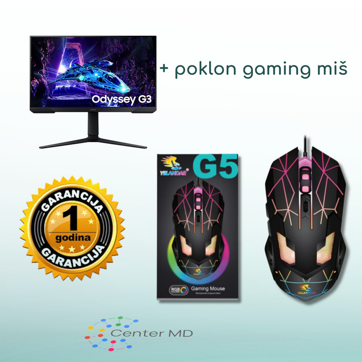 Samsung Odyssey G3 24" Spektakularan zaslon. Spektakularna igra. 🎁 UZ KUPOVINU POKLON: GAMING MIŠ Zašto izabrati Samsung Odyssey G3? ⚡ Brzina osvježavanja 180Hz + 1ms odziv Iskusite fluidno i brzo igranje...