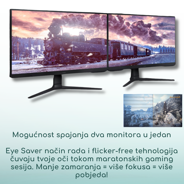 Tri strane bez ruba za neprekidan prikaz i idealan setup s više monitora.