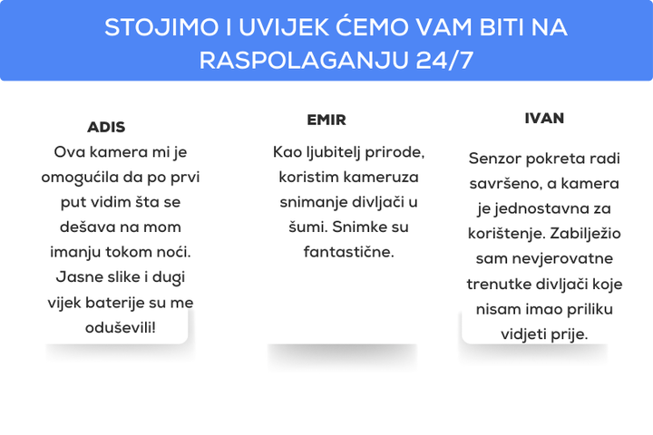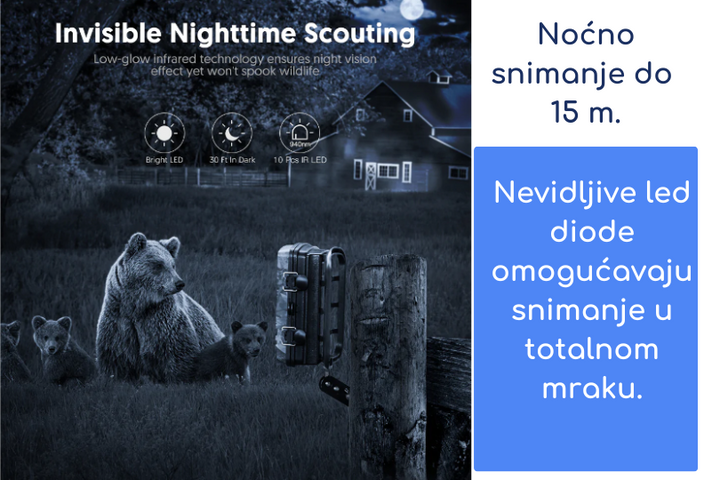 Naša lovačka kamera je idealan izbor za vas – bilo da želite pratiti divlje životinje, osigurati vikendicu ili nadgledati vaše imanje.