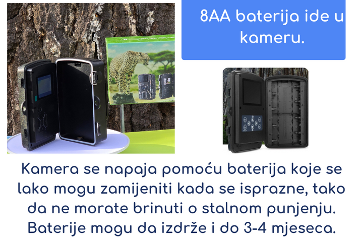 Jednostavna instalacija: Postavite je bilo gdje u prirodi. Samo ubacite 8 AA baterija i SD karticu.