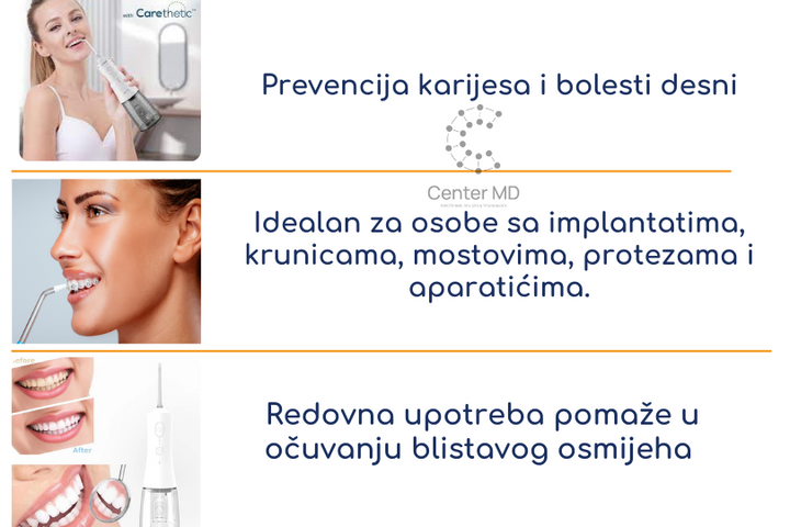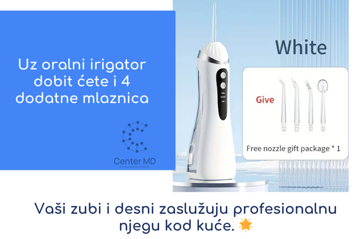 Za razliku od klasičnog zubnog konca, irigator pruža čišćenje bez rizika od oštećenja desni i uz minimalan napor.