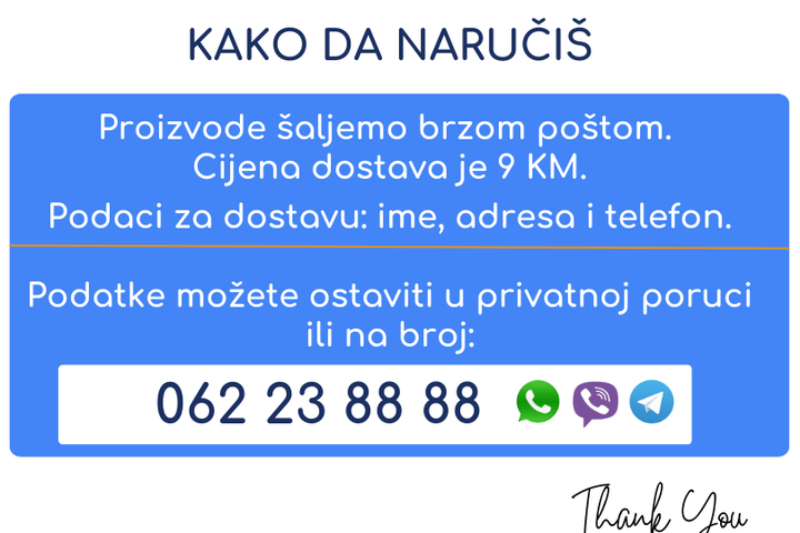 📦 Proizvode šaljemo brzom poštom. Cijena dostave je 9 KM.
