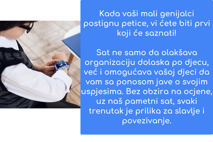 🌟🎓 Nagradite Uspjeh: A kada vaši mali genijalci postignu petice, vi ćete biti prvi koji će saznati! Pametni Sat za Djecu sa SIM Karticom ne samo da olakšava organizaciju dolaska po djecu, već i omogućava vašoj djeci da vam sa ponosom jave o svojim uspjesima. Bez obzira na ocjene, uz naš pametni sat, svaki trenutak je prilika za slavlje i povezivanje.