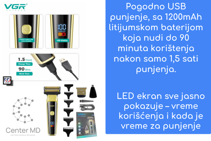 ✔ USB brzo punjenje & LED displej – Samo 1.5 sat punjenja za čak 100 minuta rada. LED ekran pokazuje preostalo vreme baterije, pa nema neprijatnih iznenađenja kad je najpotrebnija.