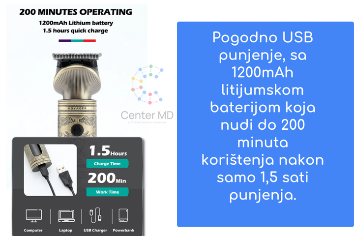 ✔️ Dugotrajna Baterija: Uživajte u do 200 minuta neprekidnog šišanja na jednom punjenju.